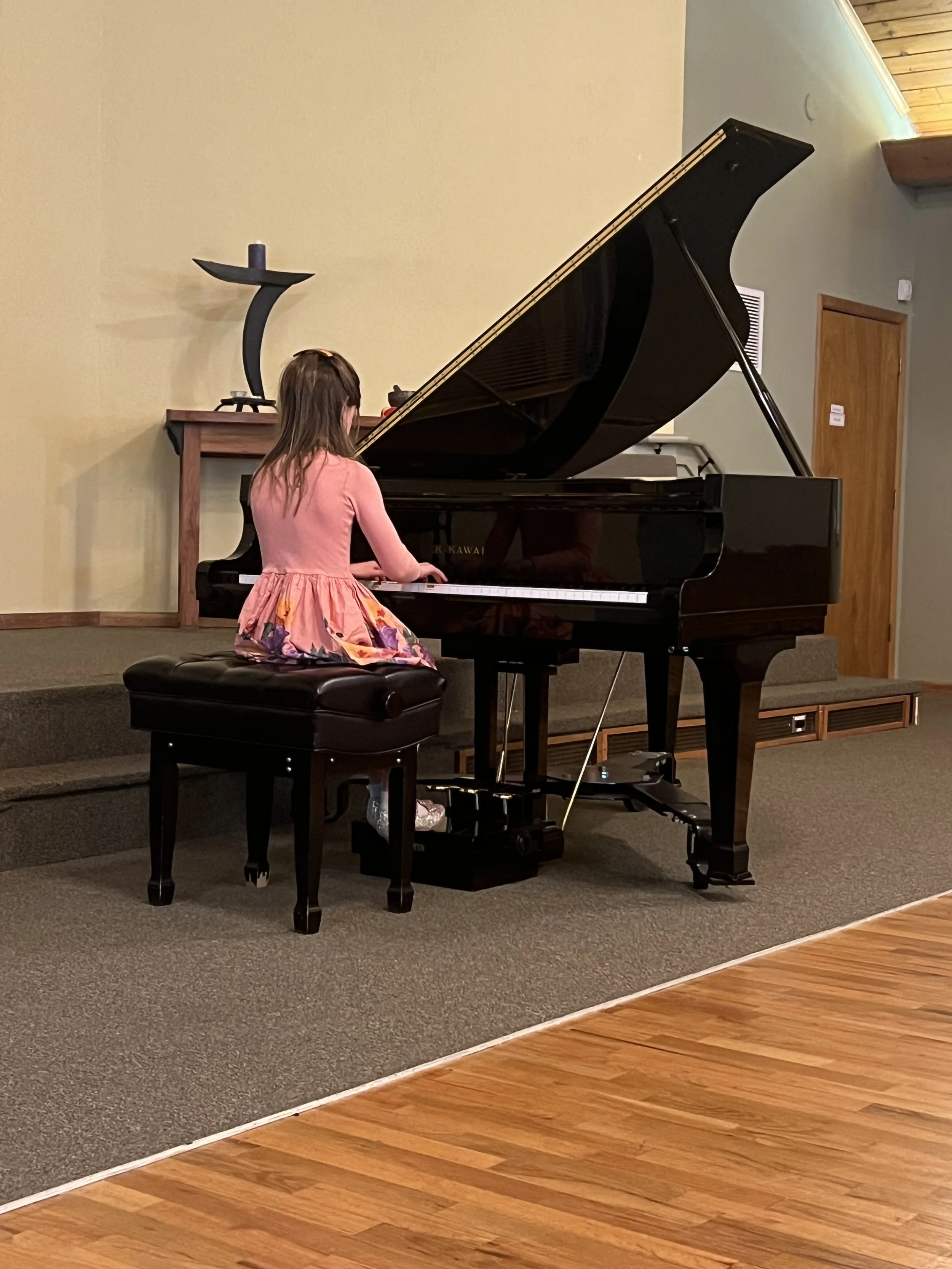 “I enrolled my 2.5-year-old daughter in Kaitlyn’s preschool class and was so happy to see her learning piano basics — black and white keys, high and low, slow and fast — as well as awareness of each of her fingers, with the clever use of some very cute finger puppets! She is comfortable now sitting at the piano and is eager to learn more. I’m excited to have Kaitlyn continue being her piano teacher for years to come.”